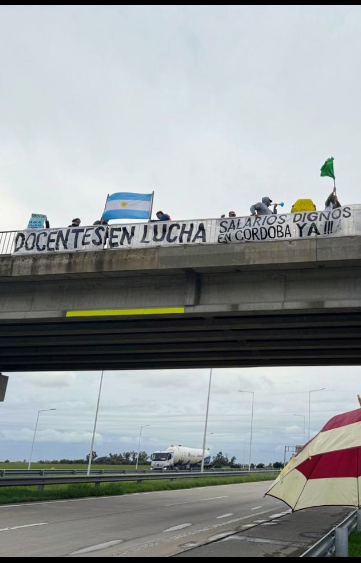 Un grupo de docente autoconvocados se manifestaron ayer en uno de los puentes de la Autopista tratando de visibilizar el reclamo que vienen llevando adelante por mejoras salariales entre otras cosas.