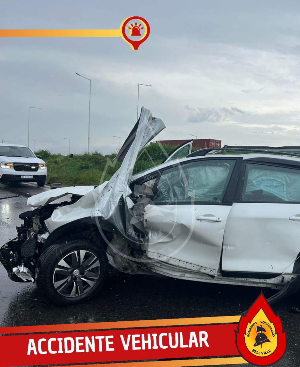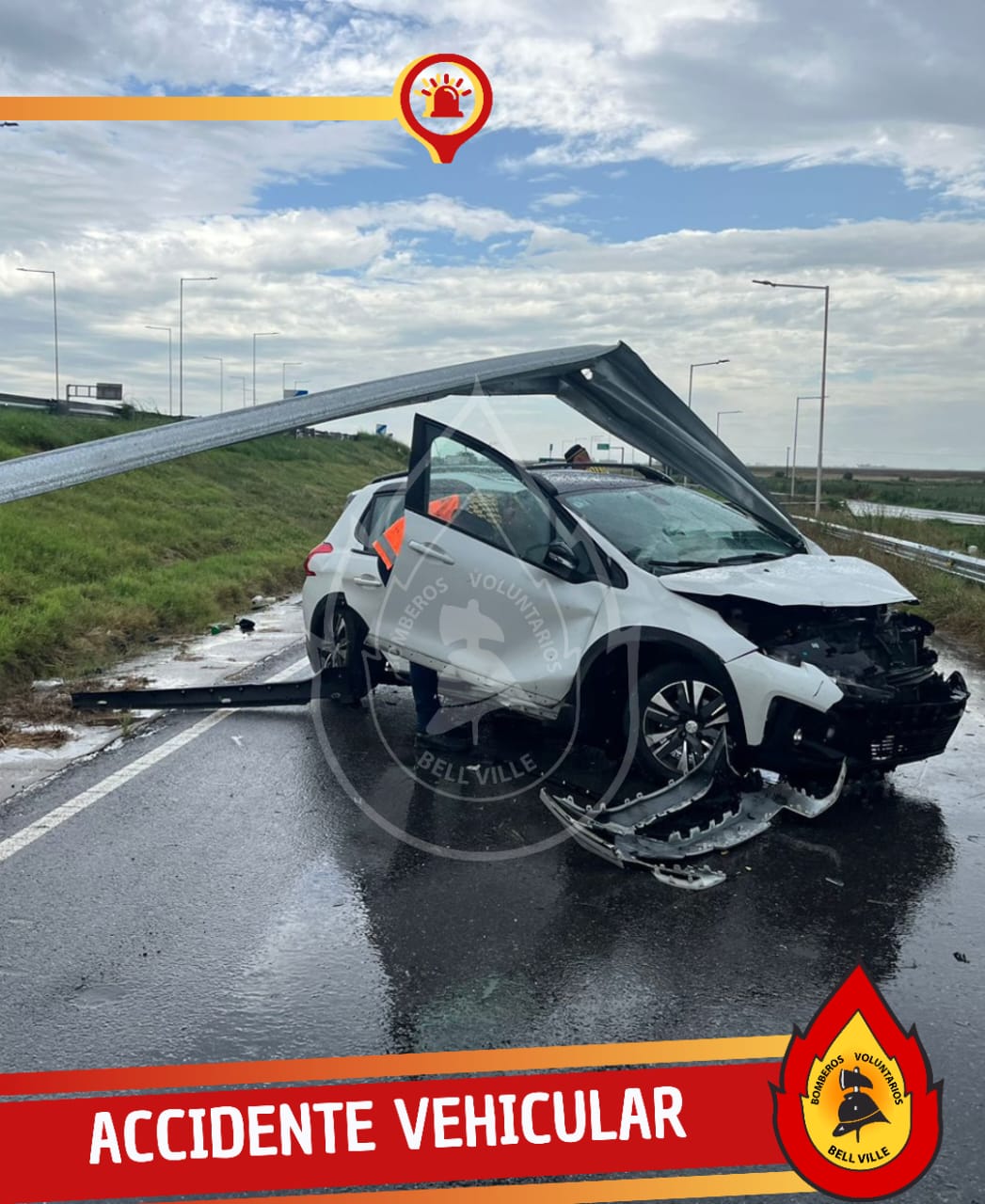 Hoy cerca de las 14 horas y con una lluvia tenue , debieron asistir a un despiste y colisión contra el guardarail de un automóvil que tenía sentido de circulación Rosario-Córdoba