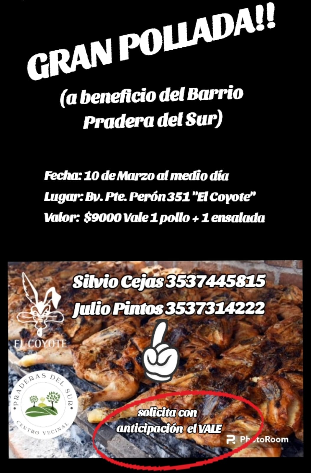 La pollada será este domingo 10 de marzo y los que quieran encargar lo pueden hacerlo al 445815 o al 314 222