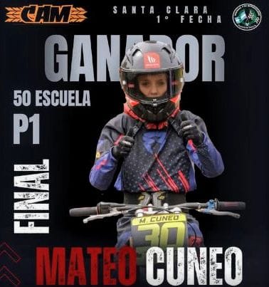 El bellvillense Mateo Cuneo (N°30) se hizo dueño de la primera carrera del calendario 2026 en la categoría Escuela 50 cc. en la final dispuesta a 12 vueltas.