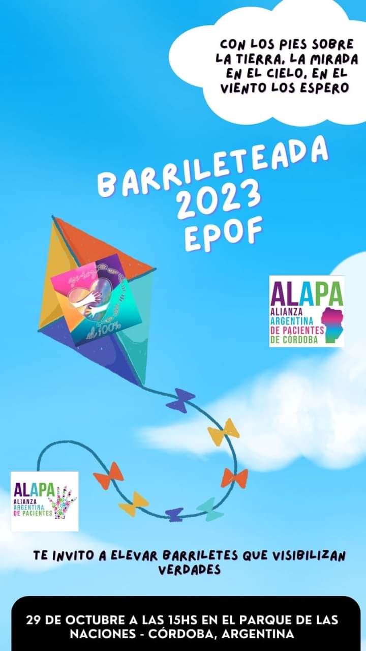 Las Epof o enfermedades poco frecuentes son más de 8.000 en el mundo y quienes las padecen tienen el problema para encontrar respuesta del sistema de salud para atender estos casos . Para hacer más visible el problema una Ong que intenta contener a quienes tienen una Epof organiza para este domingo 29 de octubre una barrileteada en distintos lugares del pais. En Córdoba Capital será en el Parque de las Naciones . Allí estará Paula ,una Bellvillense que padece Uveitis , enfermedad que afecta la vista y puede llevar a la ceguera. Paula pone de manifiesto lo difícil que es poder encontrar especialistas que atiendan este problema y más difícil todavía en hospitales públicos. Ella es referente en la Provincia de Alapa , la asociación que nuclea a quienes tienen una Epof y contó la importancia de poder hacer más visible su problema y el de muchas otras personas que no saben donde recurrir para un tratamiento.