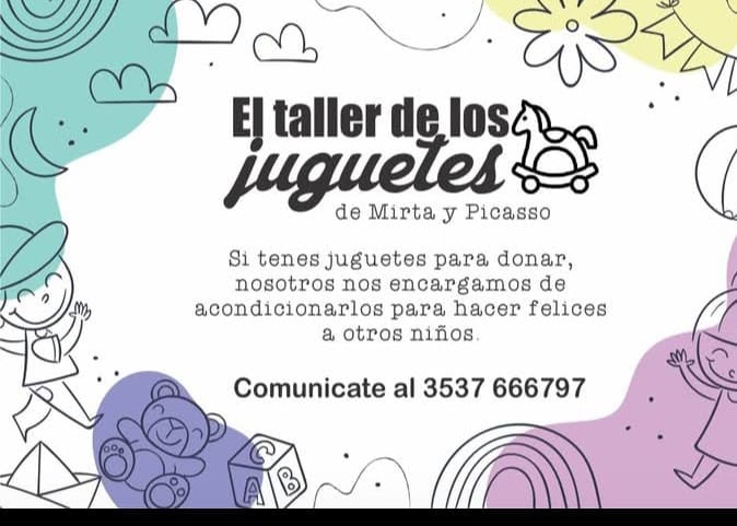 Mirta Azcherito y su esposo Picasso , así lo llama Mirta , están trabajando contrarreloj para poder tener la mayor cantidad de juguetes para regalar con motivo del próximo Dia del Niño . Los dos llevan adelante lo que denominan el Taller de los Juguetes, porque reciben juguetes usados y los recuperan, limpian, pintan , pegan y quedas listos para que otro niño los use.