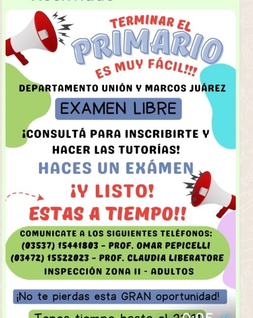 Para rendir libre primario deben inscribirse hasta el 21 de noviembre y pueden recabar más información a los teléfonos que figuran en la portada de esta nota