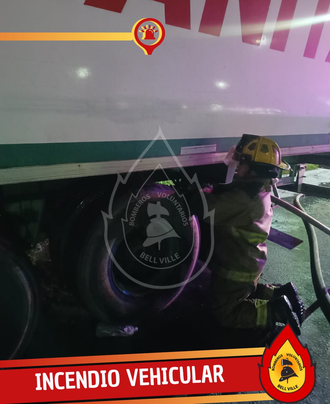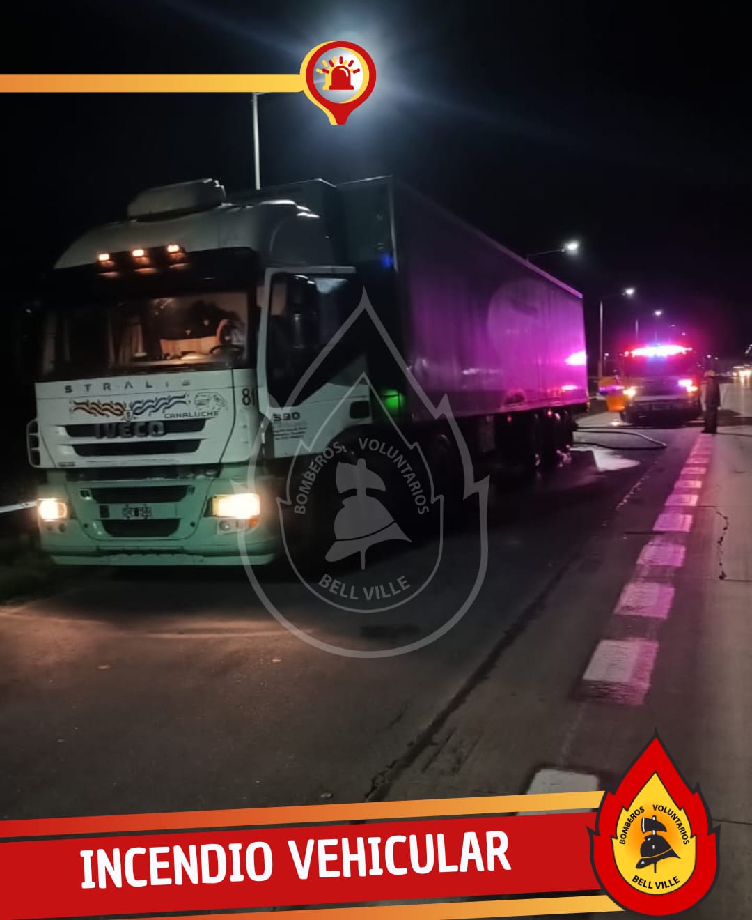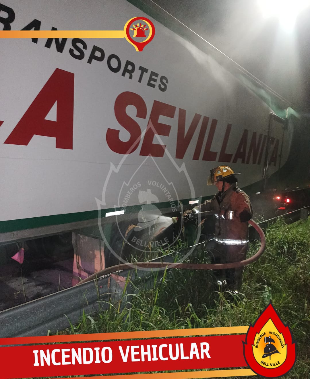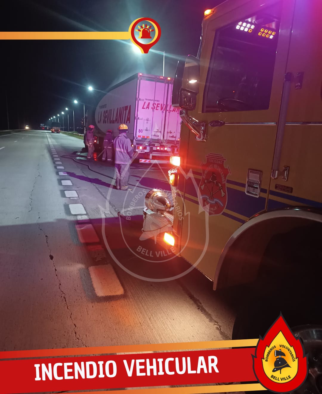 Bomberos Voluntarios de nuestra ciudad debieron concurrir pasada las 3 de la mañana para sofocar un incendio en las duales de un semirremolque , de la empresa " La Sevillanita"