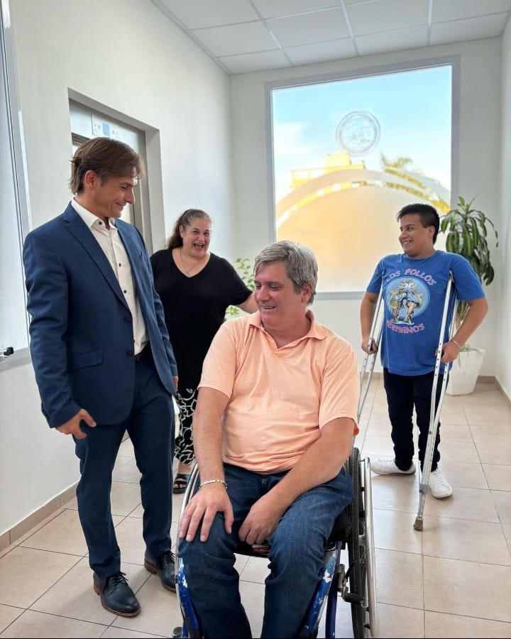 Moroni dijo estar muy contento de dejar esta obra ya inaugurada e invitó a un empleado municipal a , con discapacidad , que lleva 17 años trabajando en la municipalidad y que no había podido acceder a la planta alta en todo ese tiempo a que también dijera unas palabras a la prensa , donde Gaston , de el se trata , dijo que por fin ahora podrá acceder a charlas , cursos , y otros eventos que se hacen en el Salón Walter de Navazio , y que tanto el como mucha otra gente no podían asistir