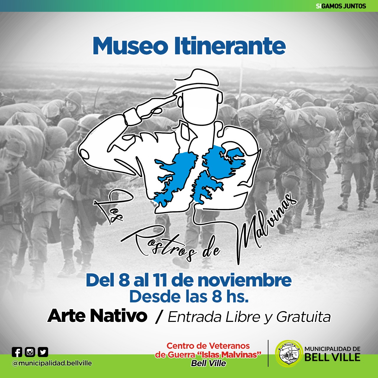 Bajo el nombre " Los Rostros Malvinas" se presenta a partir de este 8 de Noviembre y hasta el 11 , este museo Itinerante donde se muestran pertrechos de guerra y otros elementos de la guerra de Malvinas . Además habrá sobrevivientes del Gral. Belgrano que estarán brindando testimonios y charlando con los visitantes