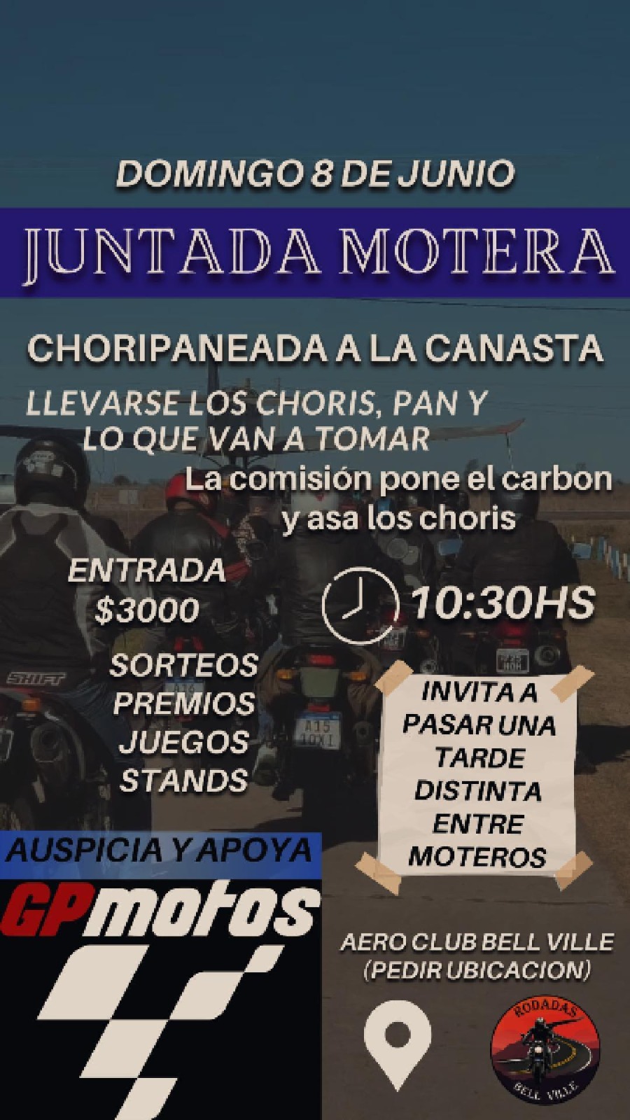 Una buena idea para pasar el domingo rodeado de motos. El grupo "Rodadas Bell Ville" , organiza lo que ellos llaman "juntada motera". Llegarán motos desde distintos lugares de la zona y de otras provincias para concentrar la actividad en el Aero Club Bell Ville.