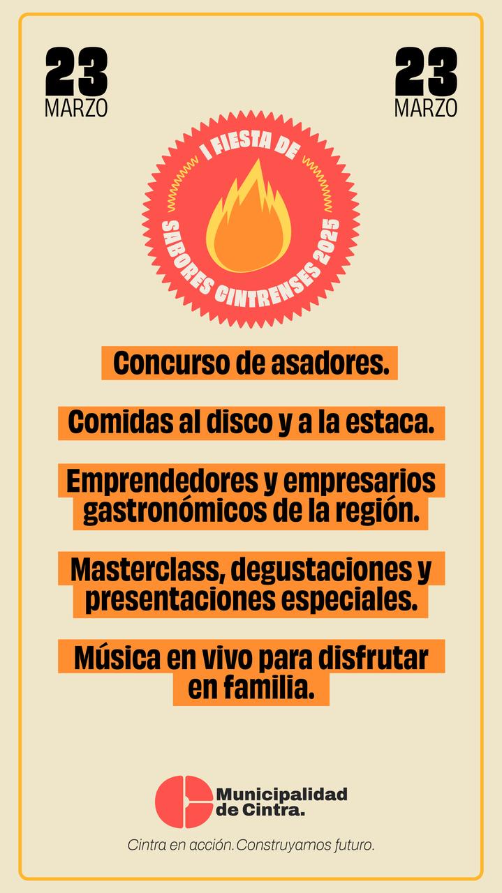 Con una muy cuidada organización la vecina localidad de Cintra se prepara para vivir un domingo distinto este próximo 23 de marzo , con su 1er. Festival de los Sabores Cintrenses a realizarze en el predio del Ferrocarril desde las 16 horas .