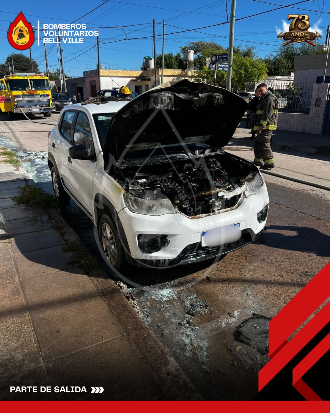 Arribados al lugar, se procedió a realizar tareas de enfriamiento y control de la situación. El vehículo sufrió daños en el compartimento del motor.