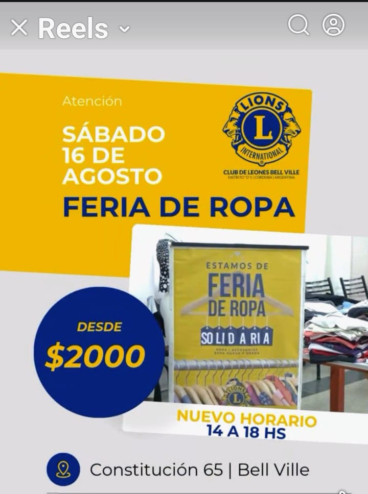 El Club de Leones prepara para este sábado una gran feria de ropas , con prendas para toda la familia y en su gran mayoría de abrigo ya que hay un tiempo más de frío todavía, según dijo Alicia , integrante del Club , quien destacó el cambio de hora . Siempre lo hacemos por la mañana , pero este sábado 16 de agosto, comenzaremos a las 14 y hasta las 18 horas , explicó Alicia , que contó que habrá prendas desde $ 2.000 y algunas un poco más costosas pero que no superarán los $5.000 .