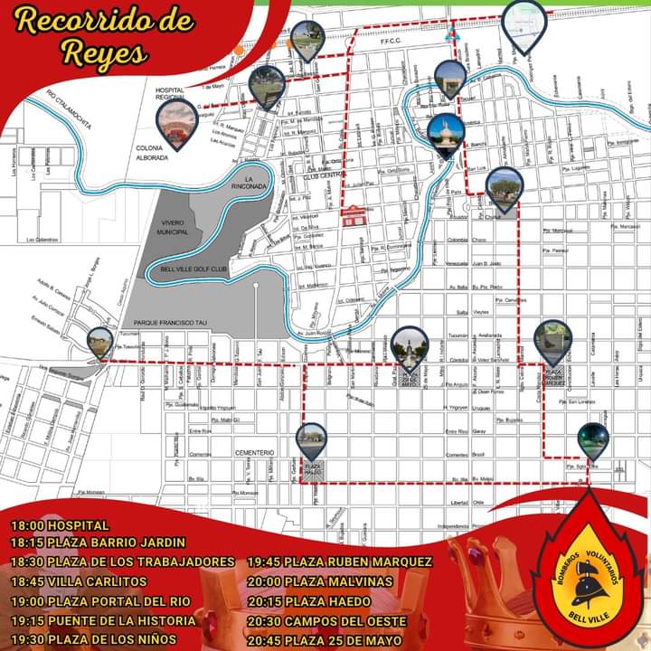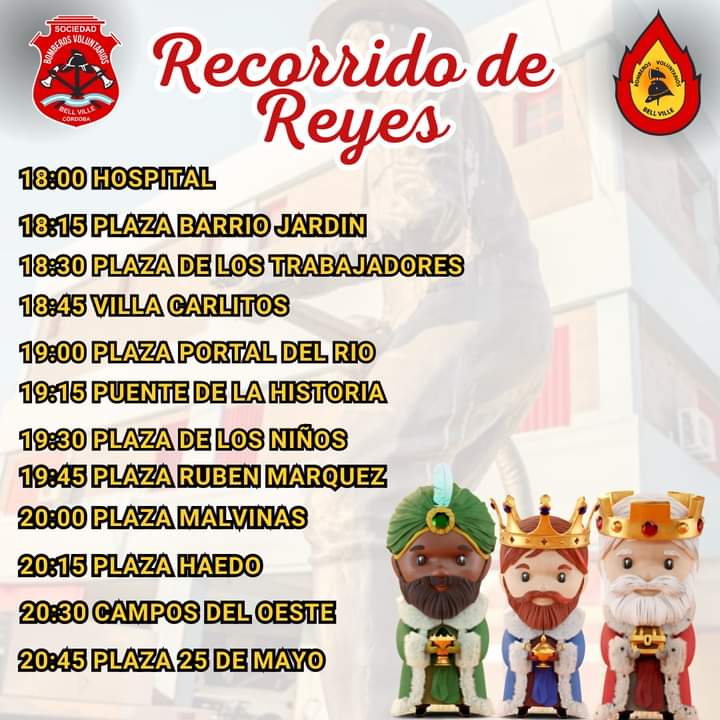 Cristian Galo , jefe del cuerpo de Bomberos Voluntarios , dio a conocer el recorrido que realizarán este sábado 6 , ataviados como los Reyes Magos , montados sobre la autobomba , repartiendo golosinas a los niños de distintos sectores de la ciudad