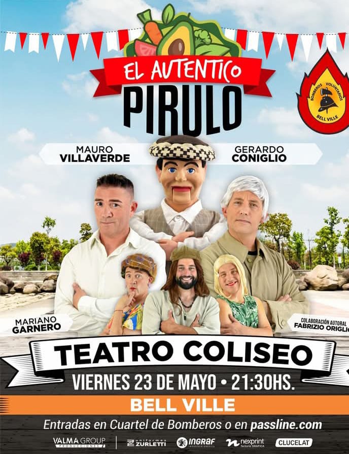 Este viernes 23 de mayo 21.30 horas y organizado por Bomberos Voluntarios , vuelve al Coliseo ,"Pirulo", este muñeco que cobra vida de la mano de Mauro y su compañero Gerardo.