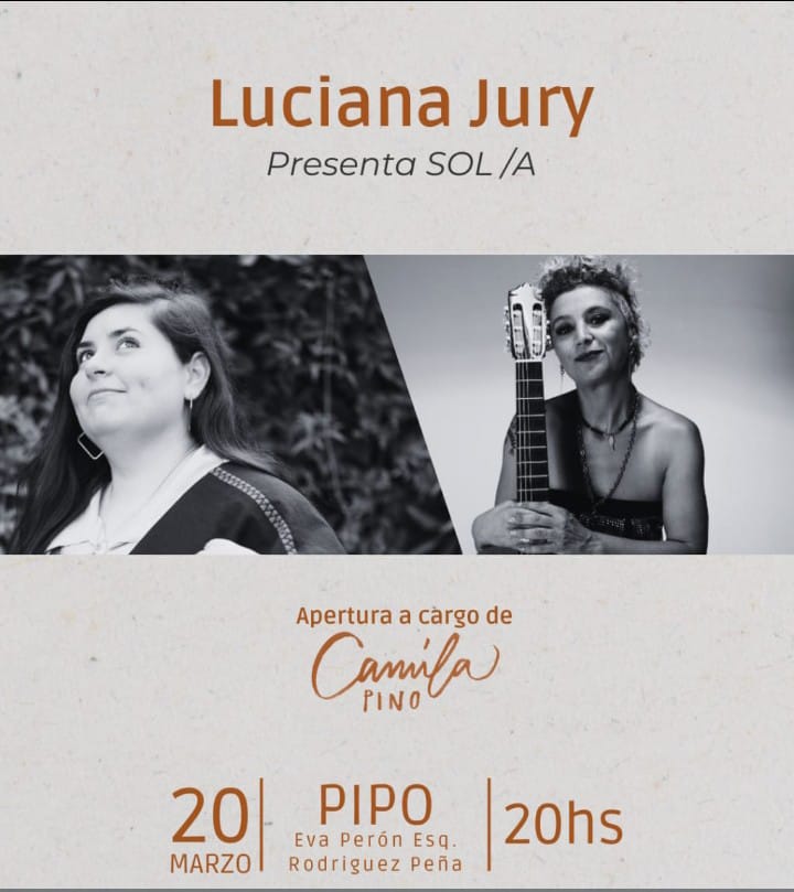 Con la producción de Casatomada, con Camila Pino a la cabeza , este jueves PIPO Bar les propone una gran noche con una invitada de lujo como Luciana Jury , que viene de una gran actuación en Cosquin , y que desarrollará un gran caudal de canciones de nuestro folclore , y su exquisita manera de interpretarlas