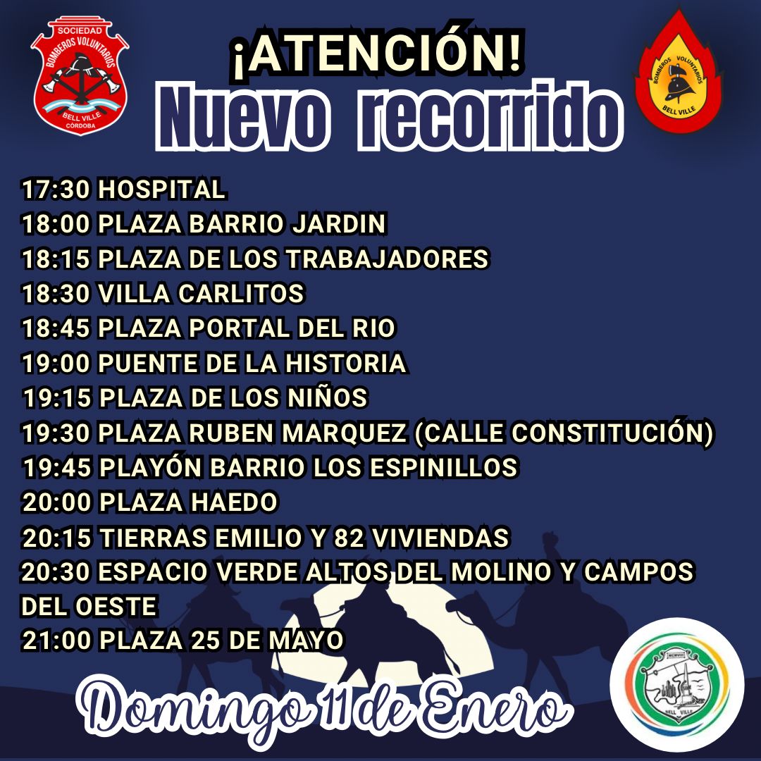Como es habitual Bomberos Voluntarios de la ciudad , ataviados como Reyes Magos y montados en la autobomba , apoyados por el municipio a través de Centros Vecinales, recorren distintos barrios de la ciudad deteniéndose en plazas y paseos a repartir golosinas a los mas pequeños , que esperan ansiosos la llegada de esos Reyes tan especiales.