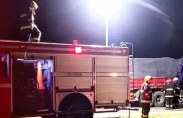 Como consecuencia del impacto, éste último rodado comenzó a incendiarse, quedando el conductor atrapado en la cabina, sin vida.