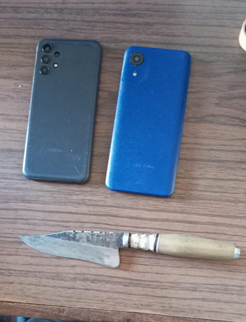hoja, con mango de metal, la cual habría sido utilizada para amedrentar a la víctima. Ambos