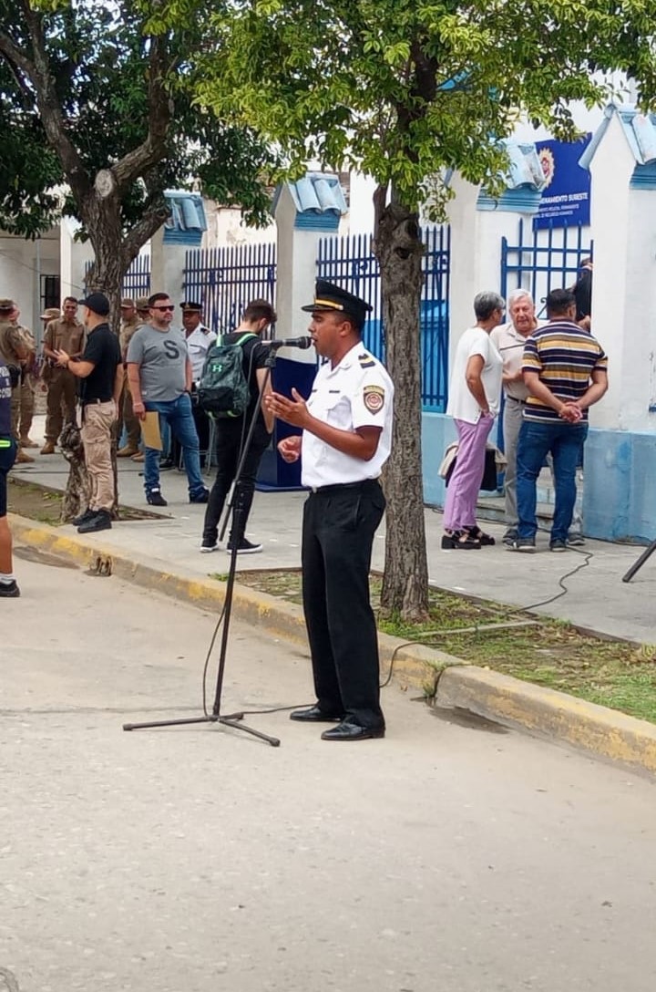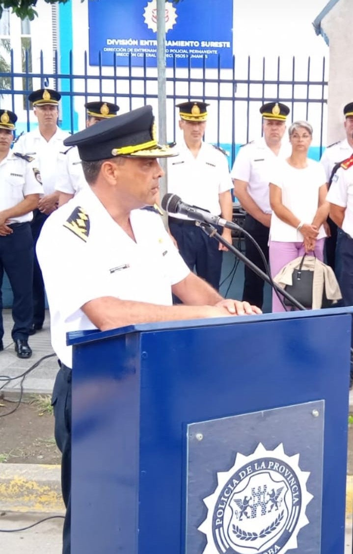 Con la presencia de autoridades provinciales y municipales y varios intendentes de la zona el acto , realizado frente al edificio Policial de Avda. España , fue presidido por el segundo jefe de la fuerza policial provincial , Comisario Mayor , Marcelo Marin , quien al hacer uso de la palabra , dijo estar emocionado por encontrarse en esta dependencia policial en la cual tránsito 27 años de su carrera dentro de la fuerza .
