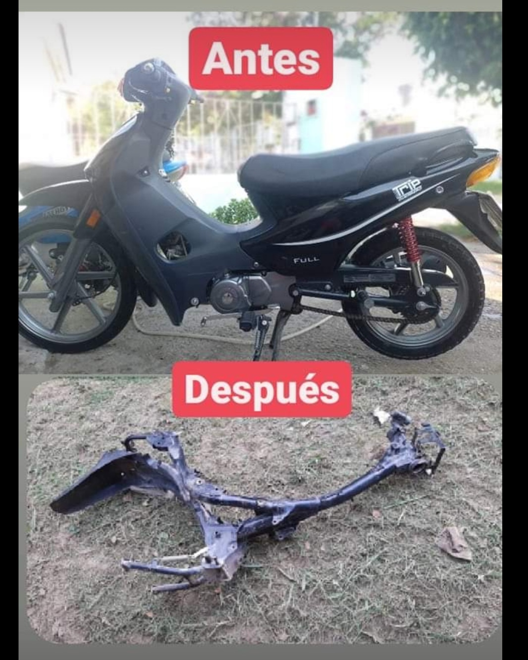 Lisandro contó esta mañana que el martes a la madrugada le robaron su moto y el, además de hacer la denuncia, comenzó a hacer su propia investigación. Esto lo llevó a descubrir en qué lugar estaba y quién la tenía. Con estos datos fue a la policía nuevamente pero le dijeron que sin orden de allanamiento nada podían hacer. Curiosamente cerca del lugar donde Lisandro decía estaba su moto encontraron, solo el caño del cuadro. Y según el joven ya habrían hecho desaparecer el despiece de su moto