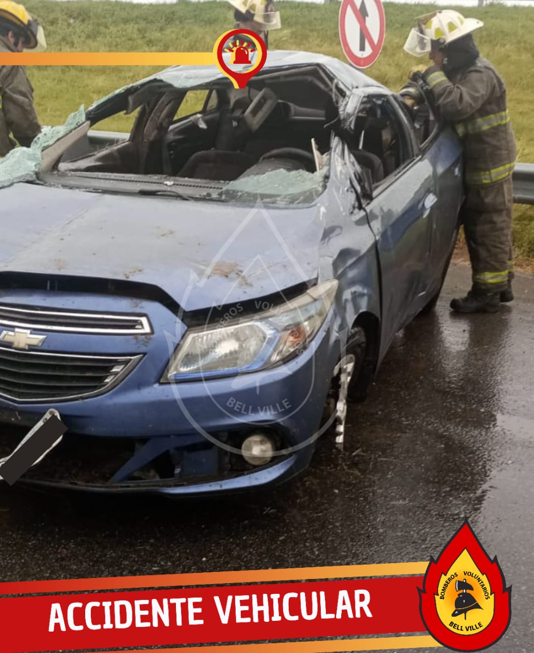 TIPO DE INCIDENTE: Despiste y vuelco de un vehículo Chevrolet prisma sobre el acceso a la localidad de Monte Leña impactando en el guardarrail y quedando sobre un lateral del mismo vehiculo . En el mismo se trasladaban 5 personas 1 menor y 4 mayores de edad sufriendo lesiones de distinta consideracion