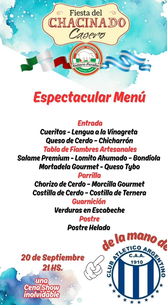 El Club Argentino tendrá este sábado un lleno total de su salón con la realización de la Fiesta del Chacinado Casero.