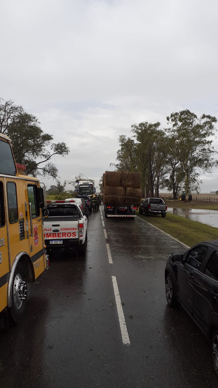 Al lugar llegaron dos dotaciones de Bomberos de nuestra ciudad que colaboraron con sus pares de Justiniano Posse para despejar la RUTA 3 , que estuvo cortada al tránsito por casi dos horas hasta que se pudieran retirar los árboles caídos en la zona impactada por el viento