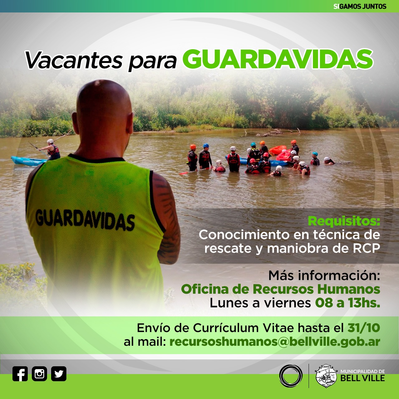 El funcionario del área seguridad , Matias Ferez convocó a los interesados a inscribirse para trabajar como guardavidas en los balnearios El Diquesito y Paso de la Arena . En total son 5 los puestos a cubrir y la convocatoria es para ambos sexos . Deben enviar currículum al área de Recursos Humanos , en las páginas de la Municipalidad o personalmente en la oficina del área. Los requisitos son mínimos, como tener alguna experiencia de rescate en el agua y conocimientos de RCP y primeros auxilios . Ferez aclaró que el municipio brindará la capacitación necesaria a quienes resulten seleccionados