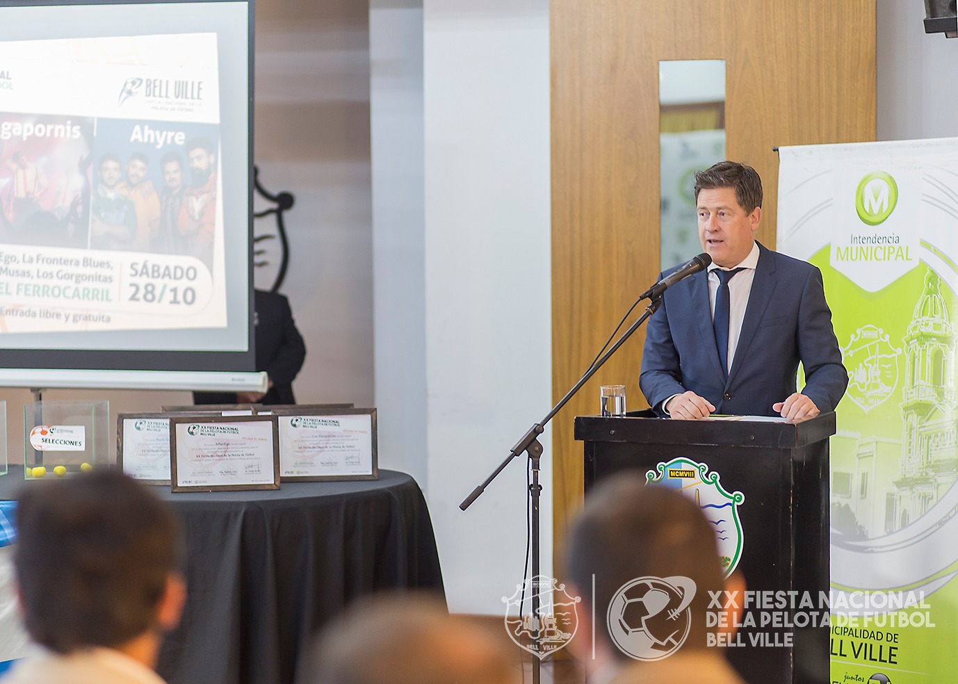 En el salón Walter de Navazio y con la presencia de medios locales y de la región, además de dirigentes deportivos y funcionarios municipales , se presentó oficialmente la edición número 20 de la Fiesta Nacional de la Pelota de Fútbol. Allí se dio a conocer algunos detalles de la misma , se presentó a los grupos locales que subiran al escenario y se dejó establecido un torneo de fútbol Sub 15 con equipos de AFA y de ligas regionales , a disputarse entre el 13 y el 17 de noviembre. Hubo un momento muy emotivo cuando se realizó un pequeño pero merecido homenaje al músico Hernan Ballari ,desaparecido hace algunos años ,quien fuera el creador de la canción de Bell Ville al Mundo , una especie de Himno de la fiesta. Allí la hermana de Hernan , también cantante , entonó a capella parte de la letra para luego presentar el tema completo.