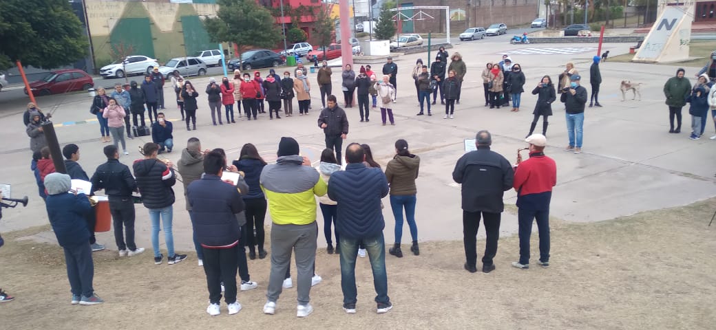 La titular del Suoem, dijo presente en la recorrida por distintas plazas que realizaron quienes fueron desplazados de la Banda de Música