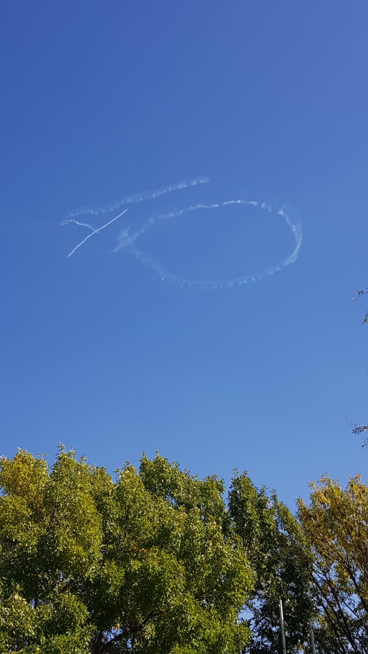 Genero mucha admiración en los asistentes del acto por los 40 años de la recuperación de Malvinas, el número 40 que dibujo con su avión en el cielo, el piloto Sergio Marinhas