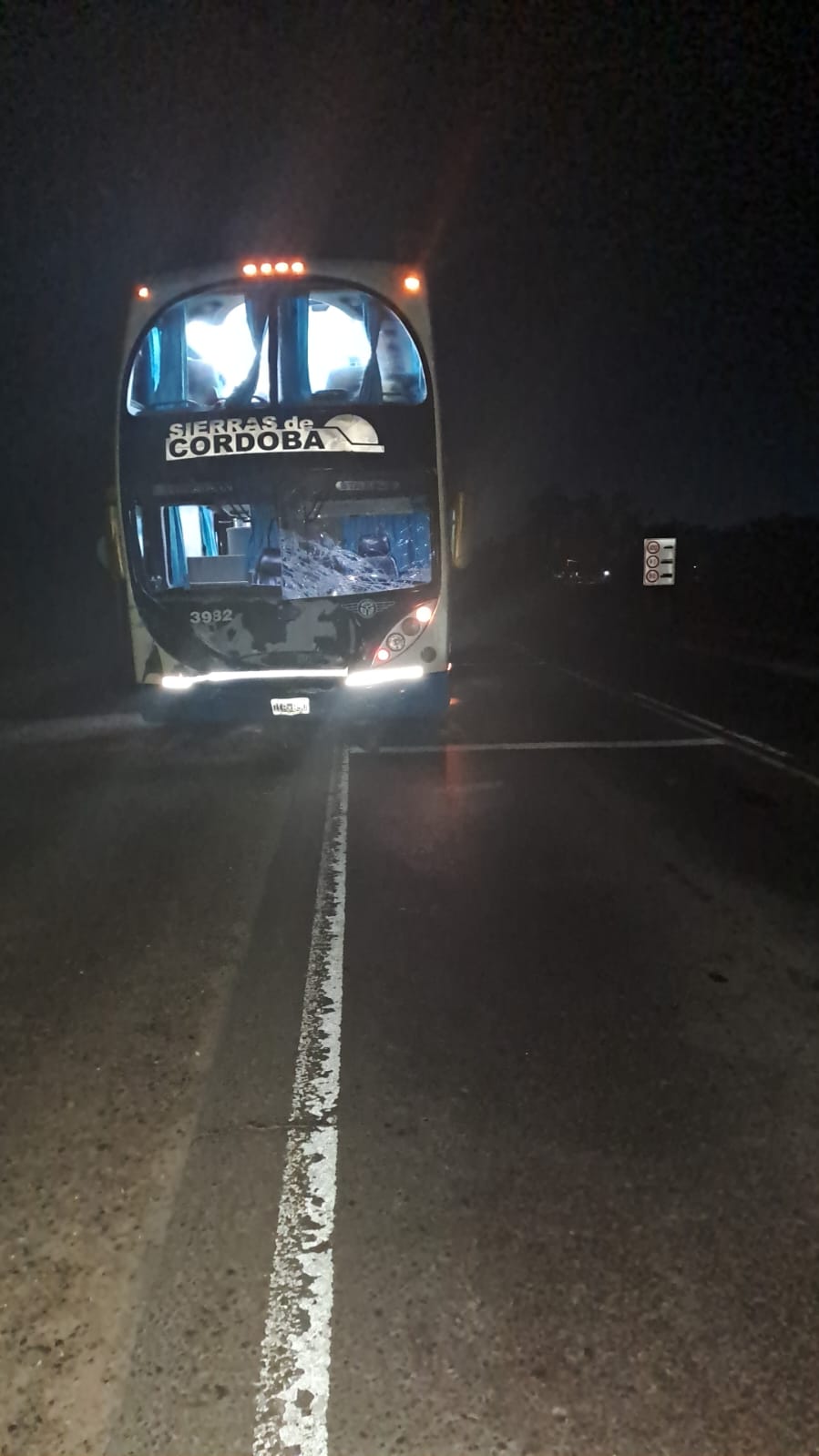 Según destaca la información policial está mañana , minutos antes de las 6 horas , un llamado alertó de un accidente en ruta 9 kilómetro 503 . Al llegar al lugar se puede ver un ómnibus de la empresa "Sierras de Córdoba " que había chocado con un equino y el animal había quedado casi debajo del transporte