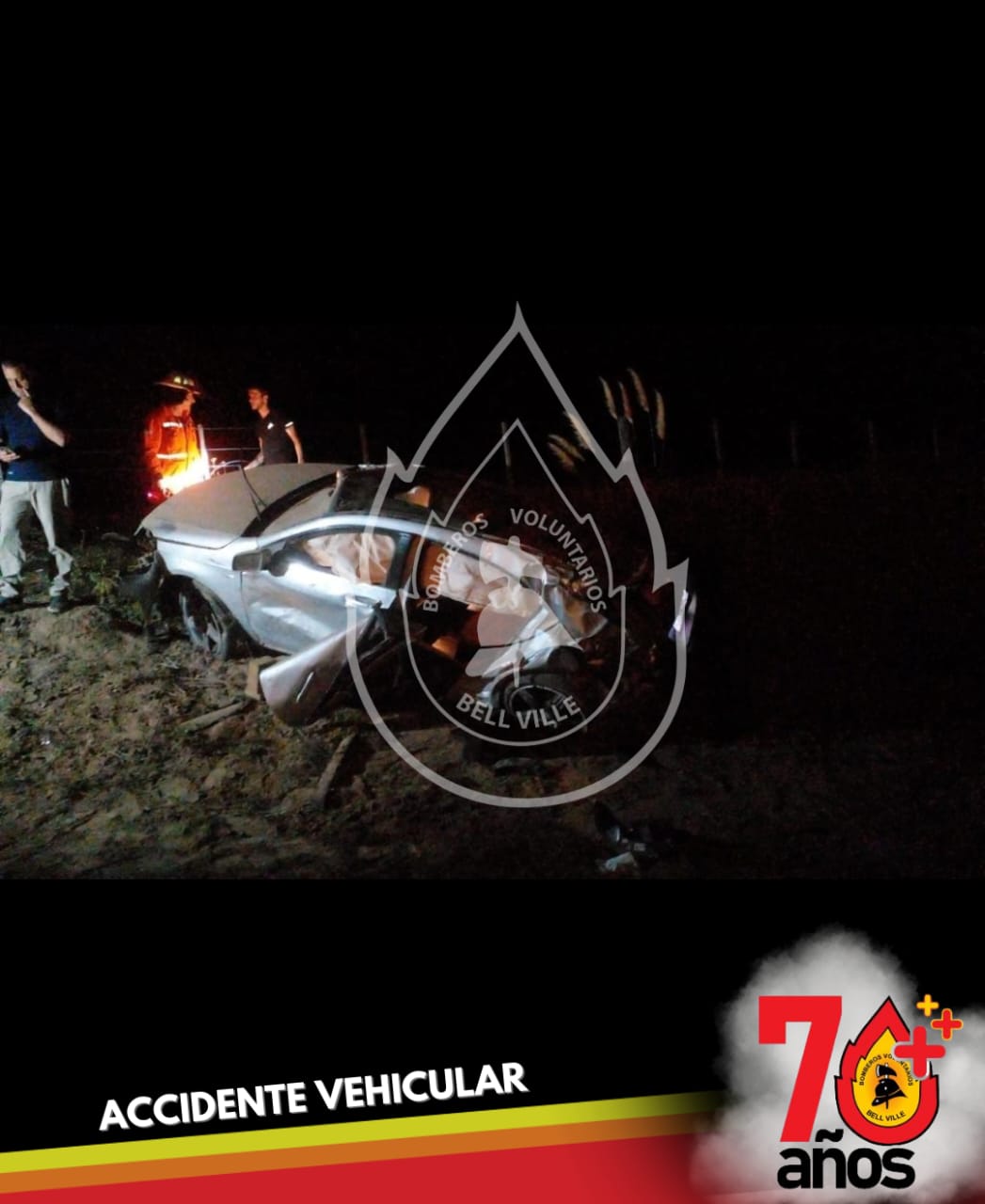 En la madrugada del domingo , 2.30 aproximadamente, Bomberos Voluntarios de la ciudad fueron alertados sobre un automóvil siniestrado . Al llegar al lugar se trataba de un Mercedes Benz 250 que habría dado varios tumbos para quedar a un costado de la Avenida .