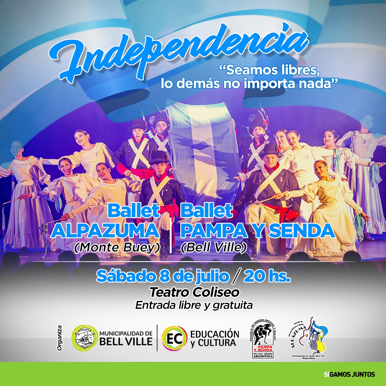 En lo que será la noche de gala por el 9 de Julio este sabado en Teatro Coliseo se van a presentar los Ballets Pampa y Senda y Alpazuma , ballet oficial de Monte Buey, presentando la obra "Seamos libres lo demás no importa nada"