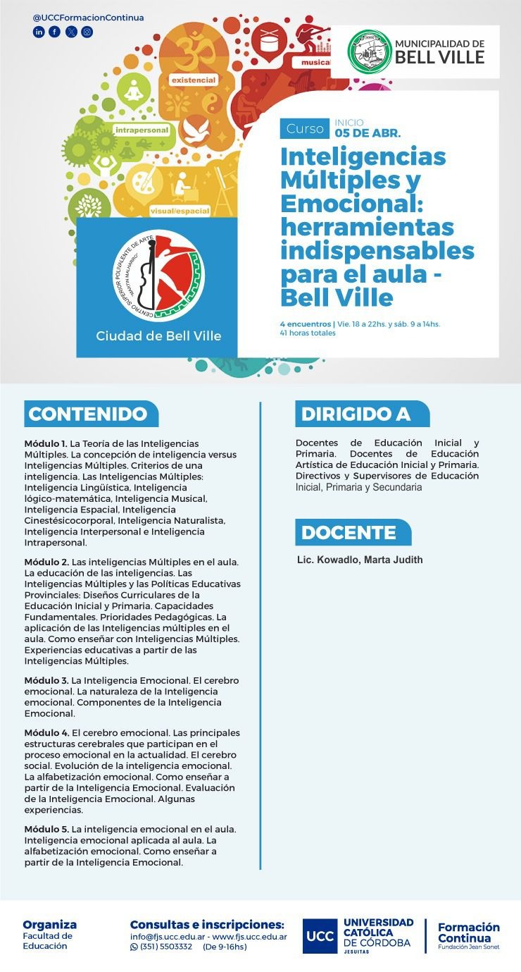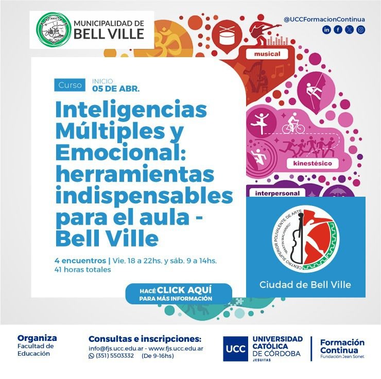 Un importante curso de capacitación docente tendrá lugar en el Centro Polivalente de Arte , sobre "Inteligencias múltiples y emocional : Herramientas indispensables para el aula"